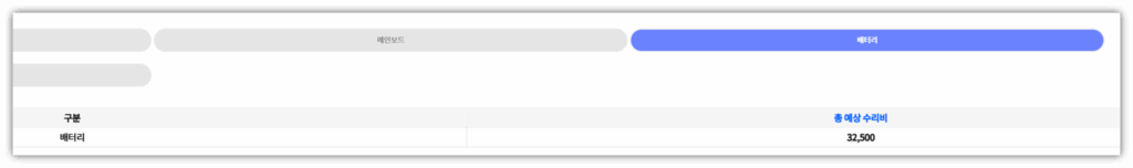 6. 배터리 클릭 후 교체 비용을 확인 합니다.