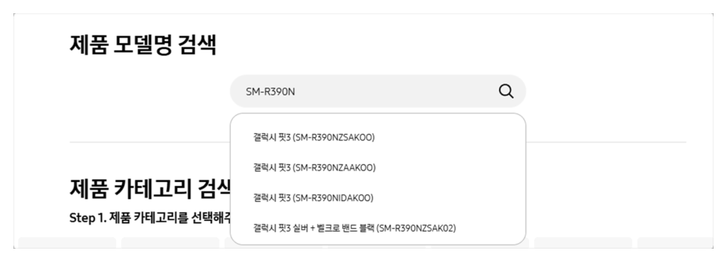 3. 사용하고 있는 모델 검색(예시: 갤럭시 핏3)