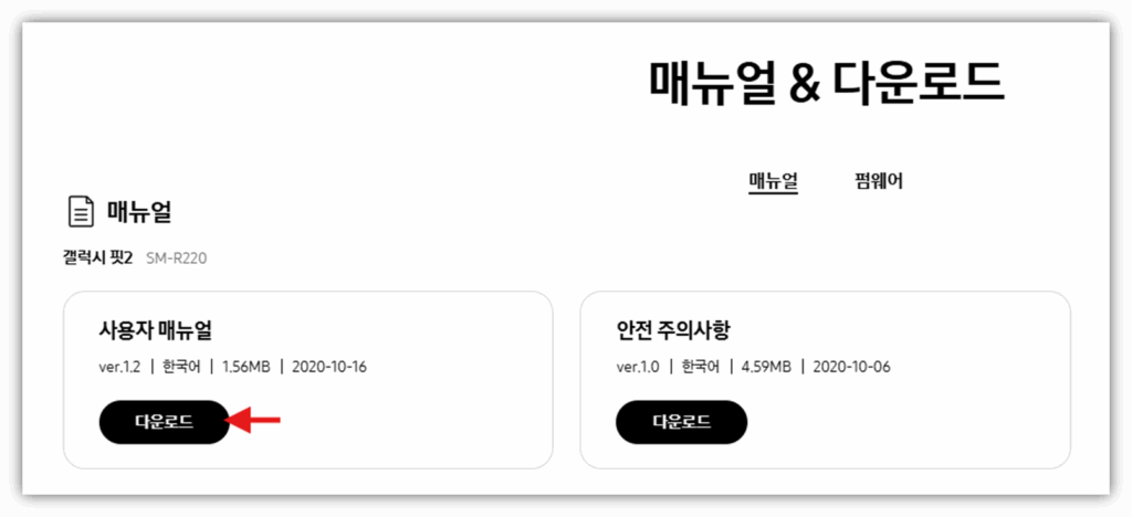 이렇게 갤럭시 핏2 매뉴얼 다운로드 방법을 안내해드렸습니다.