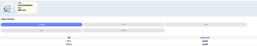 ✅갤럭시 스마트폰 모델명을 입력하여 해당 모델의 액정 교체 비용 확인