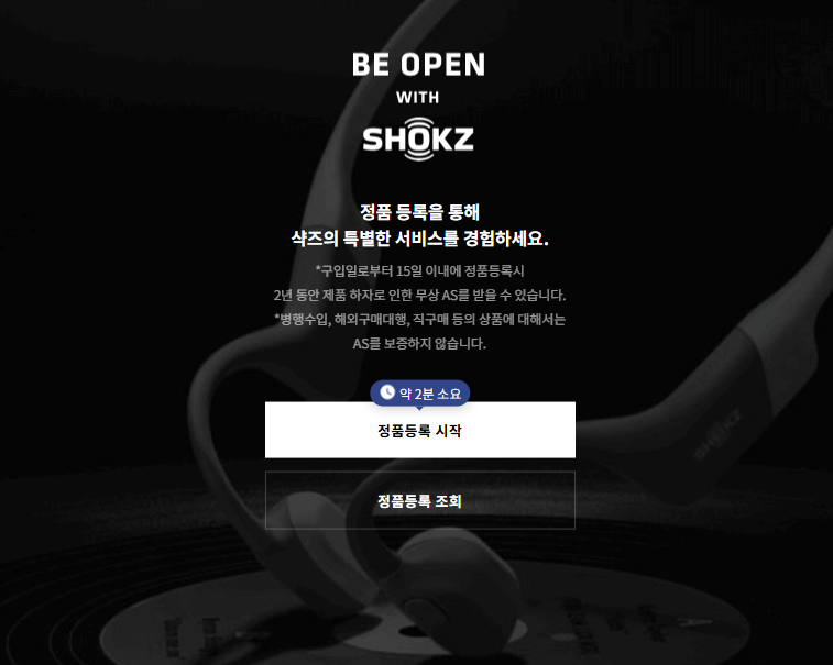 • 기준일: 샥즈 2년 워런티 서비스는 최초 제품 구매일을 기준으로 적용됩니다..