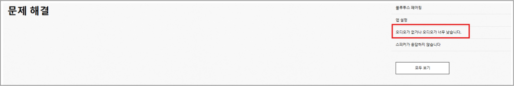 3. 문제 해결 → “오디오가 없거나 오디오가 너무 낮습니다.”을 선택합니다.
