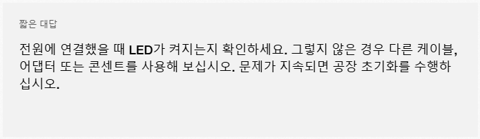 고장 확인: 위의 방법으로 문제가 해결되지 않는 경우, 하드웨어적인 문제가 있을 수 있습니다. 이 경우, 서비스 센터에 문의하여 점검을 받는 것이 좋습니다.