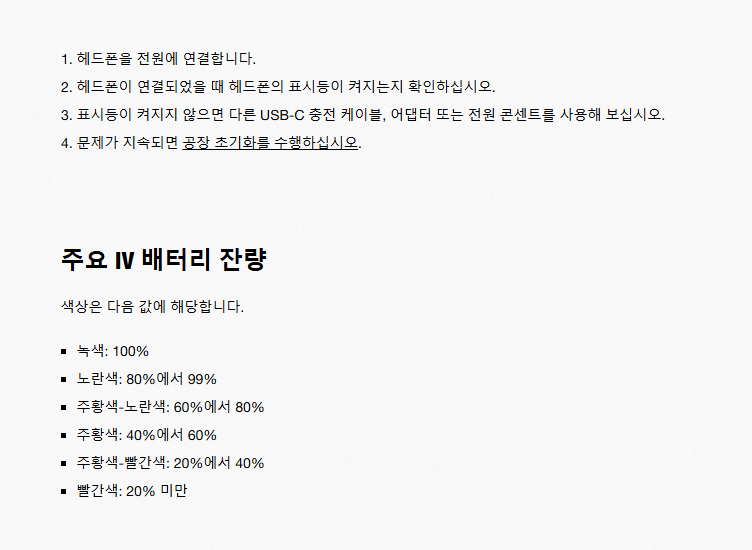 ② 리셋: 헤드폰을 초기화하여 소프트웨어 오류를 해결할 수 있습니다. 사용 설명서에 따른 리셋 방법을 참고하여 초기화 후 다시 시도해 보세요.