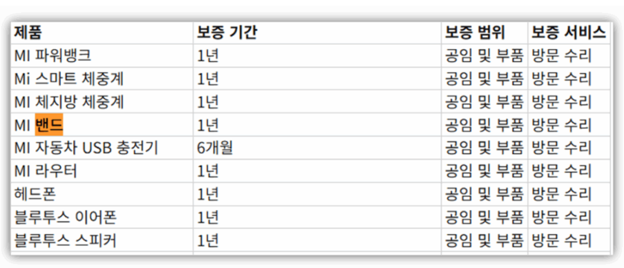 정식 유통된 미밴드 10은 구입일 기준 1년의 무상 보증을 제공합니다. 정상적인 사용 중 발생한 기능적 문제는 무상 교환 또는 수리가 가능하지만, 외부 충격이나 침수, 해외 직구 제품은 대상에서 제외됩니다.