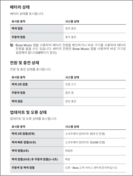 ① 보스 공식 홈페이지 또는 Bose Connect 앱을 통해 최신 펌웨어 업데이트를 확인하고, 주기적으로 업데이트하세요.