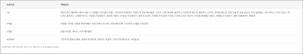 보증기간 내에는 정상적인 사용 환경에서 발생한 고장에 대해 무상 수리 또는 리퍼비시 액세서리 교환이 진행됩니다. 액세서리 종류와 고장 증상에 따라 교환이 이루어질 수 있습니다.