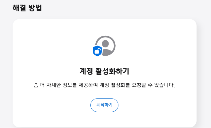 “보안상의 이유로 계정이 비활성화되었으므로 로그인할 수 없습니다.”