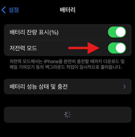 - 저전력 모드를 활성화하면 불필요한 전력 소모를 줄여 충전 속도가 개선될 수 있습니다.