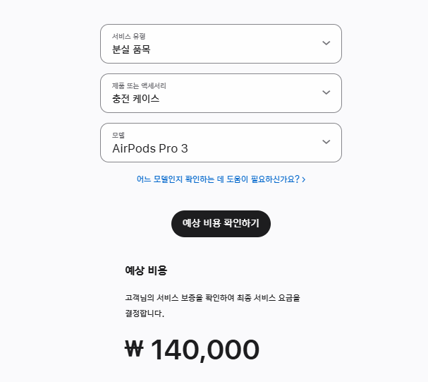 | 충전 케이스 교체 | 무상 | 140,000원 | 자기부담금 40,000원 |