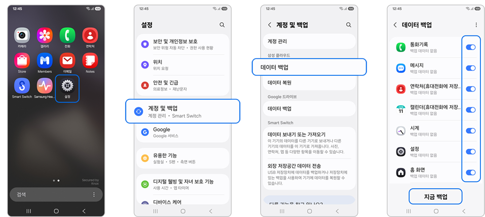 계정을 연동하고 백업 데이터를 복원하는 것만으로도 사용자의 홈 화면, 앱 구성, 설정값까지 그대로 재현할 수 있어 설정 시간을 단축할 수 있습니다.