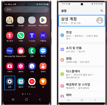 📌 설정 → 계정 및 백업 → 계정 관리 → 삼성 계정