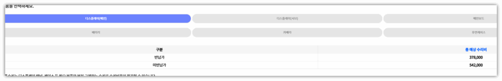 다만, 정확한 가격은 방문한 서비스센터, 프로모션 적용 여부, 워런티 기간에 따라 차이가 있을 수 있습니다. 가장 빠르고 정확한 방법은 삼성전자 서비스센터 홈페이지 또는 챗봇을 통해 모델명을 입력해 실시간으로 확인하는 것입니다.